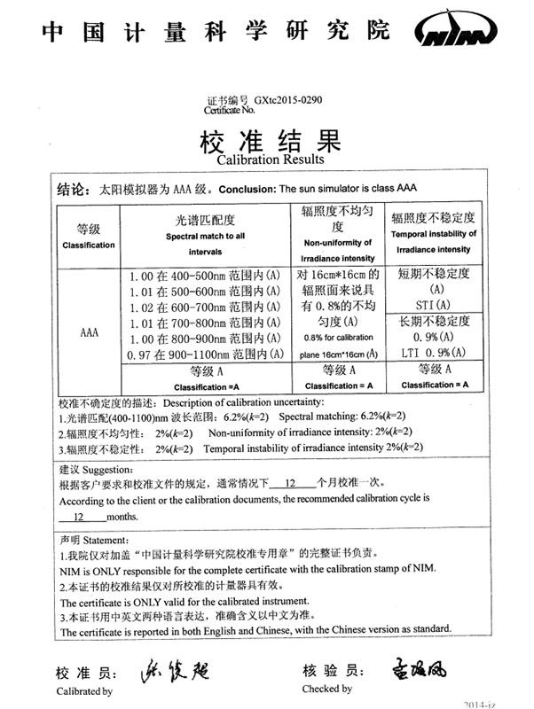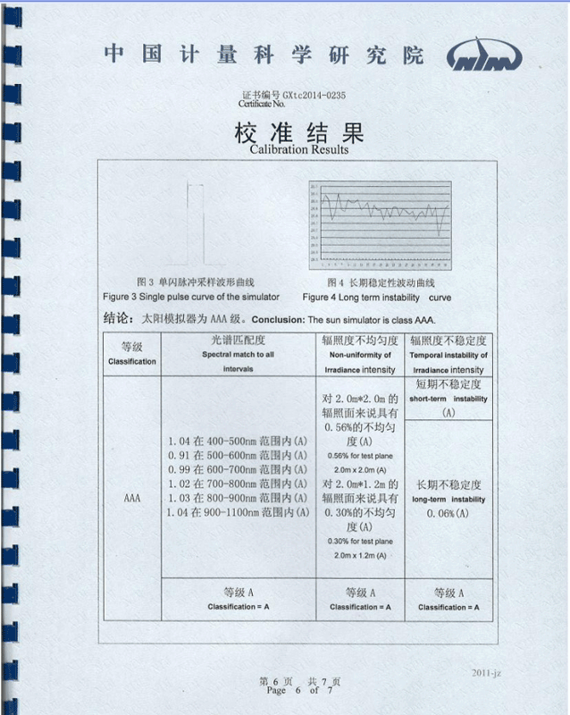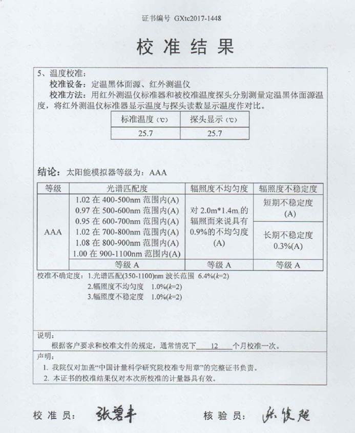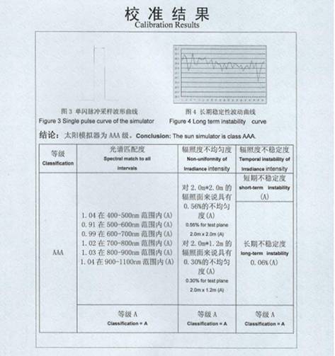 GIV-20A太陽模擬器計(jì)量結(jié)果