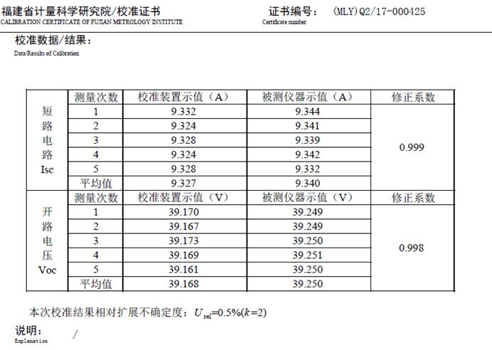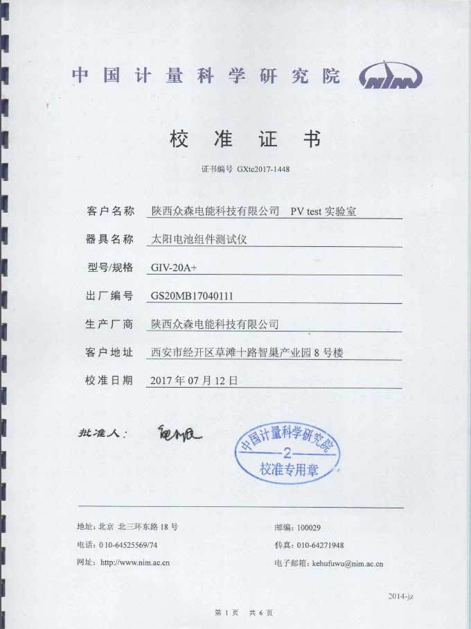 1.7%測(cè)量不確定度,國(guó)內(nèi)領(lǐng)先水平目前,在太陽電池組件測(cè)試領(lǐng)域,眾森PV test 實(shí)驗(yàn)室的1.7%測(cè)量不確定度處于國(guó)內(nèi)領(lǐng)先水平,已獲得中國(guó)計(jì)量科學(xué)研究院認(rèn)證。