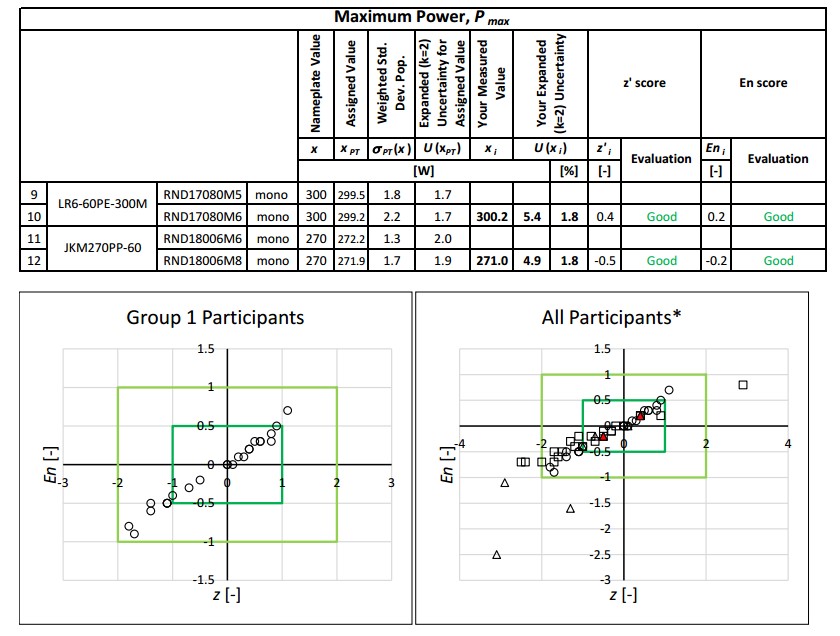 陜西眾森在雙面組件國(guó)際比對(duì)中取得優(yōu)異成績(jī)世界雙面太陽能組件國(guó)際比對(duì)結(jié)果公布,陜西眾森PV Test 實(shí)驗(yàn)室測(cè)試結(jié)果與世界知名實(shí)驗(yàn)室結(jié)果一致(后附項(xiàng)目背景和報(bào)告)。 2020-04-17 世界雙面太陽能組件國(guó)際比對(duì)結(jié)果公布,陜西眾森PV Test 實(shí)驗(yàn)室測(cè)試結(jié)果與世界知名實(shí)驗(yàn)室結(jié)果一致(后附項(xiàng)目背景和報(bào)告)。 世界雙面太陽能組件國(guó)際比對(duì)項(xiàng)目由新加坡能源研究所(SERIS)組織,于2018年2月啟動(dòng),此次能力驗(yàn)證項(xiàng)目共有十三個(gè)國(guó)家和地區(qū)的著名研究機(jī)構(gòu)和實(shí)驗(yàn)室參與,包括NREL,JRC,AIST,F(xiàn)raunhofer等。 此次國(guó)際能力驗(yàn)證測(cè)試項(xiàng)目,是按照國(guó)際最新標(biāo)準(zhǔn)IEC 60904-1-2雙面組件電壓電流測(cè)試方法,要求各實(shí)驗(yàn)室對(duì)單面組件和雙面組件樣品在不同測(cè)試條件下,分別測(cè)量關(guān)鍵光電性能參數(shù),包括短路電流、開路電壓、正面功率、背面功率、總功率、雙面率等。此次比對(duì)測(cè)試將國(guó)際著名實(shí)驗(yàn)室的結(jié)果作為參考值,其他參與者測(cè)試結(jié)果與之對(duì)比,根據(jù)Z值和En值進(jìn)行評(píng)估,結(jié)果分為Good(好),Satisfactory(滿意),Questionable(問題),Unsatisfactory(不滿意)。 針對(duì)本次國(guó)際比對(duì),陜西眾森高度重視。比對(duì)伊始就與中國(guó)計(jì)量科學(xué)研究院緊密合作,在比對(duì)過程中多次進(jìn)行技術(shù)討論,并嚴(yán)格按照不確定分析要素進(jìn)行了分析。同時(shí),購置了兩種高準(zhǔn)確度標(biāo)準(zhǔn)太陽電池,并對(duì)光譜失配進(jìn)行修正。在本次比對(duì)結(jié)果中,所有樣品(2塊單面組件和3塊雙面組件)功率測(cè)試都獲得Good的結(jié)果?!瓣兾鞅娚恢币詠矶挤浅V匾暜a(chǎn)品品質(zhì),歷年來針對(duì)每款新產(chǎn)品都進(jìn)行三方校準(zhǔn),力求每款設(shè)備穩(wěn)定、準(zhǔn)確。這也為本次國(guó)際比對(duì)獲得好結(jié)果打下了良好基礎(chǔ)”,中國(guó)計(jì)量科學(xué)研究院研究員熊利民如是說。 此次國(guó)際比對(duì)項(xiàng)目是對(duì)各國(guó)權(quán)威實(shí)驗(yàn)室檢測(cè)能力的一次驗(yàn)證,有助于提高各實(shí)驗(yàn)室測(cè)試穩(wěn)定性和準(zhǔn)確性,促進(jìn)國(guó)際實(shí)驗(yàn)室間的學(xué)術(shù)交流與討論,推動(dòng)太陽能產(chǎn)業(yè)向高質(zhì)量發(fā)展。 ————測(cè)試報(bào)告————